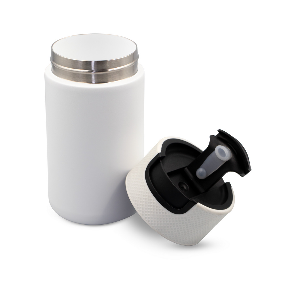 Der Thermobecher 400 ml mit Keramik ist der ideale Imageträger für Ihre Marke. Seine doppelte Wand aus Edelstahl und Keramik mit Vakuumisolierung hält Getränke bis zu 10 Stunden heiß und bringt den Alltag Ihrer Kunden auf ein neues Niveau. Der elegante matte Look und der praktische Kunststoffdeckel mit Verschluss sorgen für ein stilvolles Trinkerlebnis – perfekt für den modernen Business-Alltag.